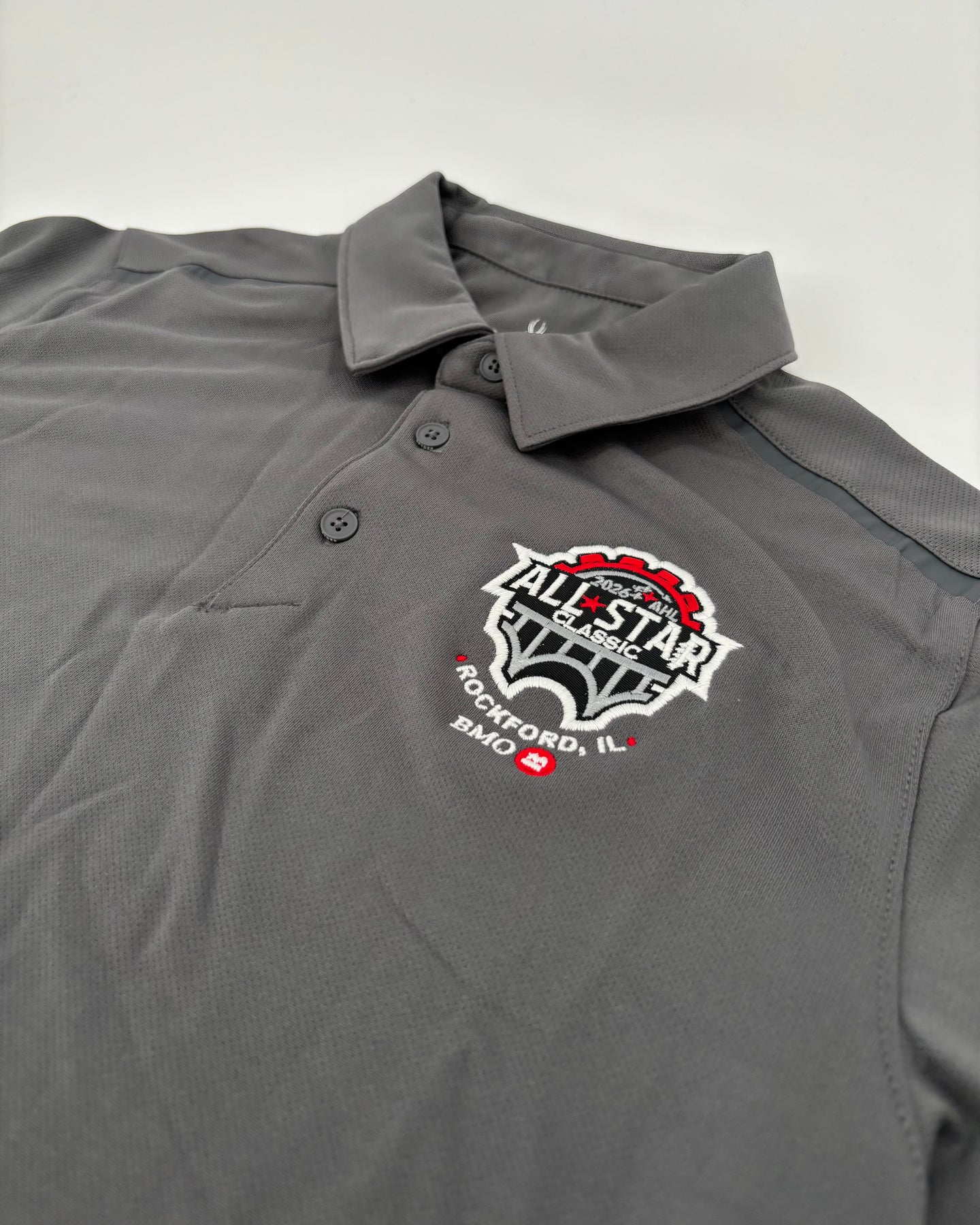 This Rockford IceHogs All Star Freestyle Polo features the 2026 AHL All Star logo embroidered on the front left chest.