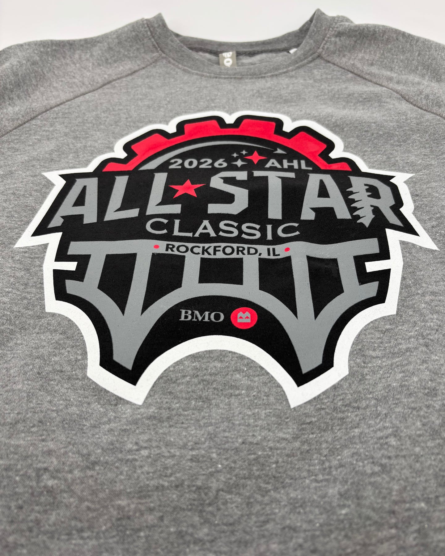 This grey Rockford IceHogs All Star Classic Crewneck features the 2026 All Star logo design across the front and an IceHogs medallion logo on the left sleeve.