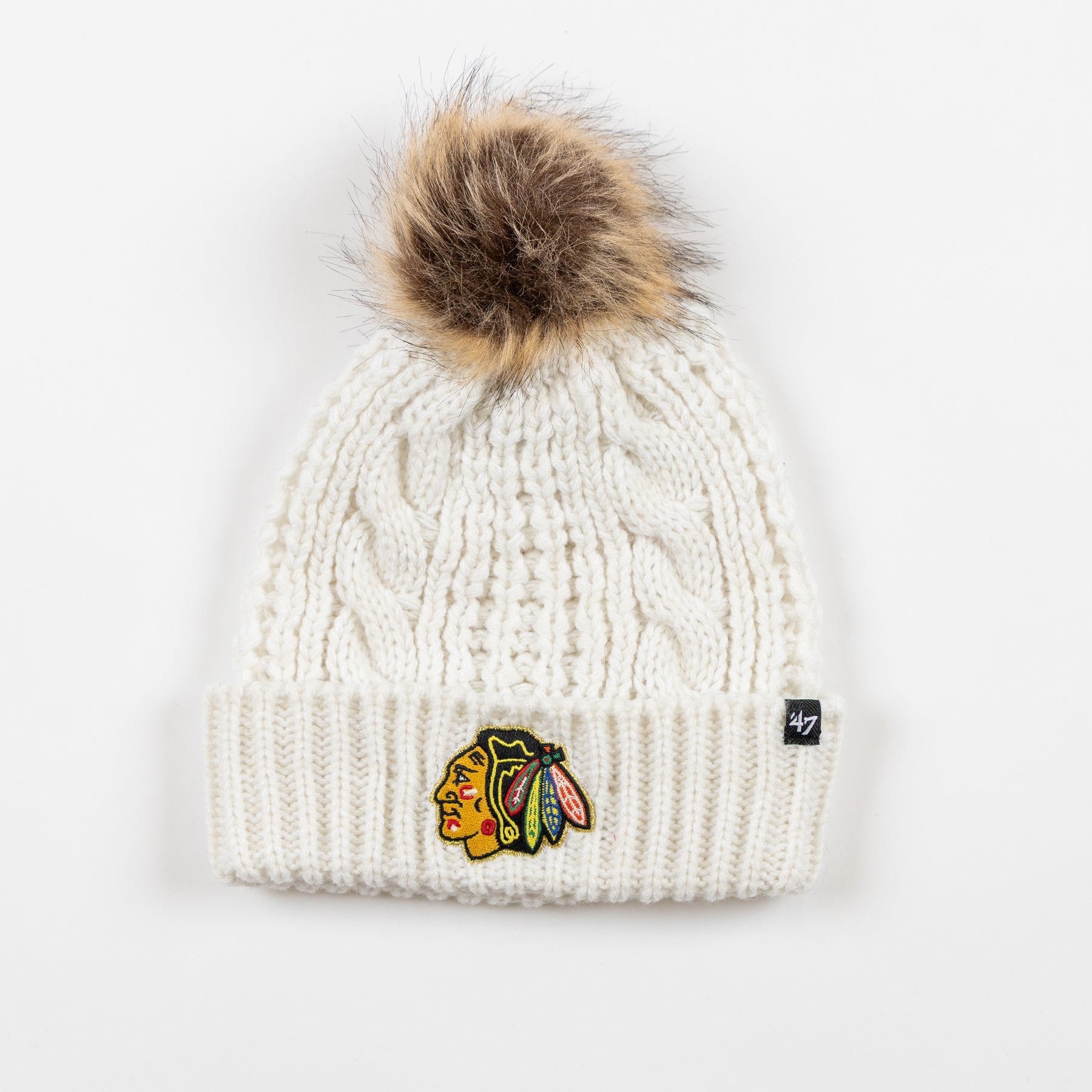 Celebrate 100 years of Blackhawks pride with the '47 Chicago Blackhawks Centennial Meeko Knit Hat in warm white! This cozy knit cap keeps you warm while showing off your team spirit in style. Perfect for game days or any chilly adventure, it’s a fun way to honor a century of hockey history. Gear up, stay snug, and let your fandom shine!