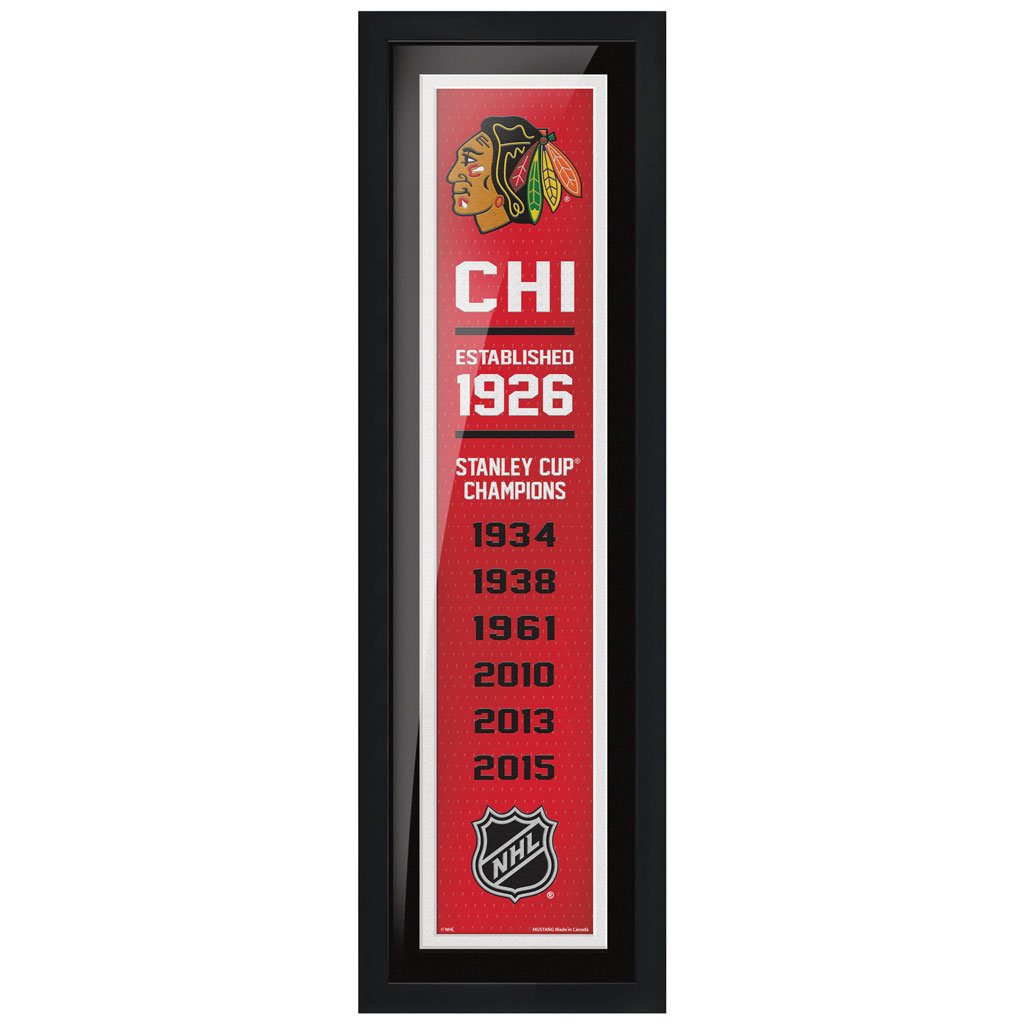 The perfect addition to any hockey Fan Cave, Man Cave, office or bar. This Chicago Blackhawks wall art includes one of our officially licensed NHL graphics, printed and placed into our 6” x 22” framed art kits by our Canadian production team. This fine piece of wall-décor ships with a protective acrylic cover to minimize breakage and increase the lifespan of your product. All framed home décor comes with pre-mounted hanging hardware. Additional mounting hardware may be required.