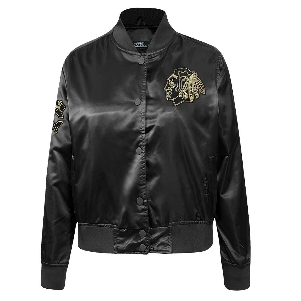 Pro Standard Chicago Blackhawks Centennial Black & Gold Women's Satin Jacket