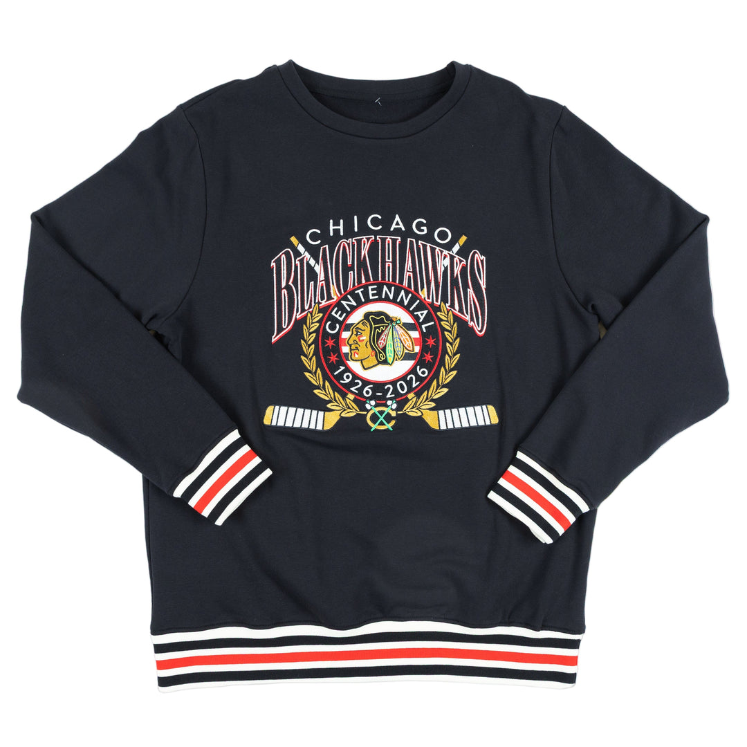 American Needle Chicago Blackhawks Centennial French Terry Rib Cuff Crewneck