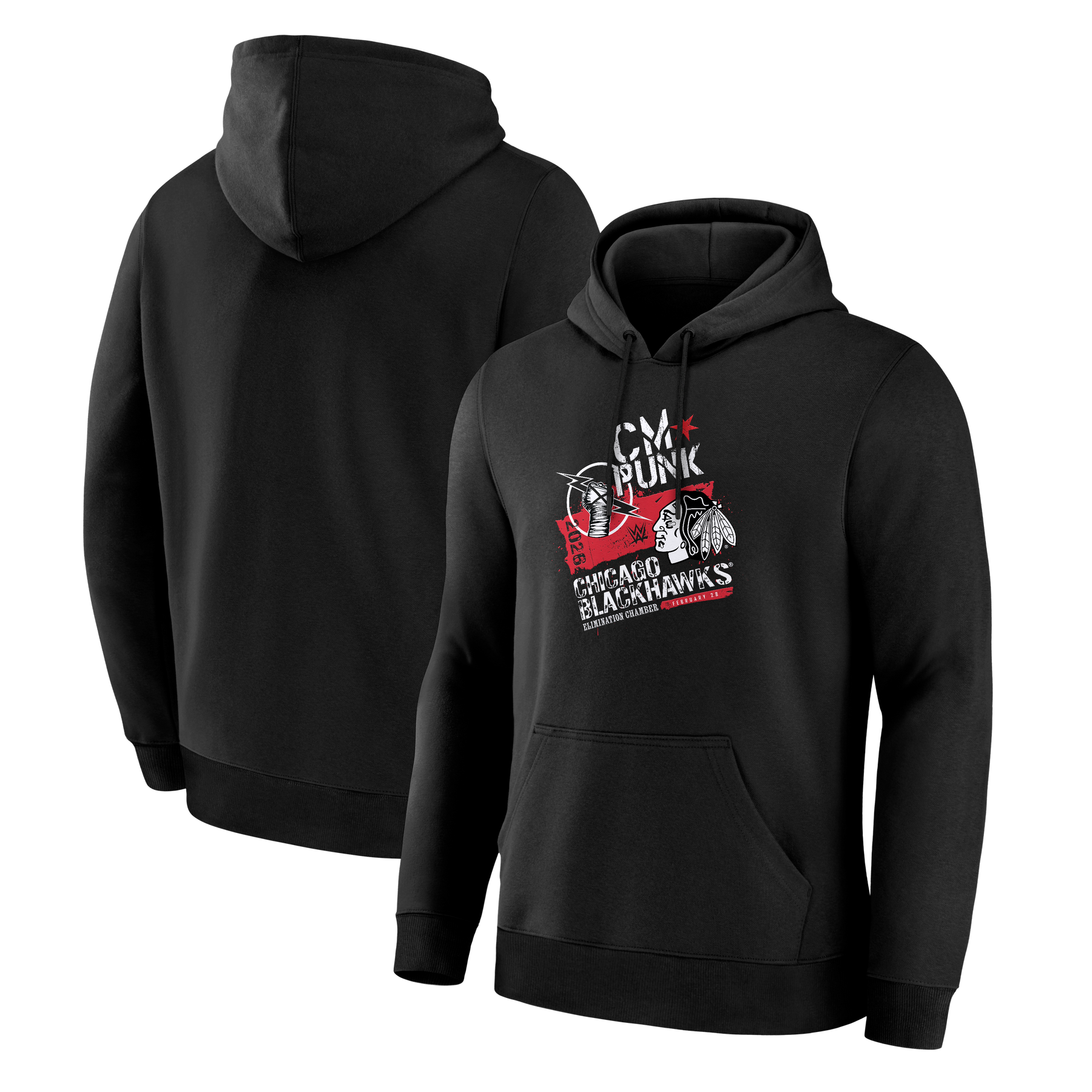 Celebrate the ultimate collaboration with this exclusive Chicago Blackhawks and CM Punk hoodie. Designed by wrestling icon and Chicago-native CM Punk, this limited-edition sweatshirt merges professional hockey and wrestling in one comfortable collector's piece. Featuring premium construction and bold graphics that honor both the legendary Blackhawks legacy and Punk's unforgettable WWE career, this hoodie is a must-have for fans who live at the intersection of two iconic sports worlds. Wear your fandom loud and proud!