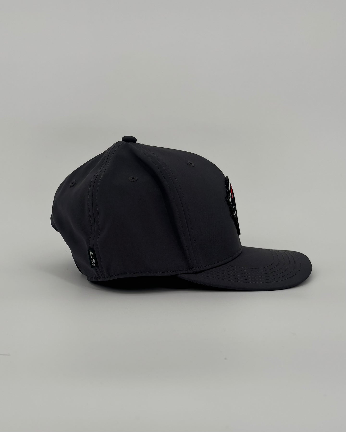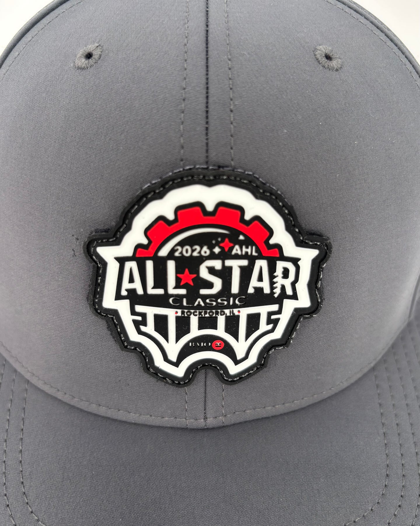 This Rockford IceHogs Legacy Back 9 Adjustable Hat features a rubber 2026 All Star Classic patch on the front of a dark grey hat with an adjustable back.