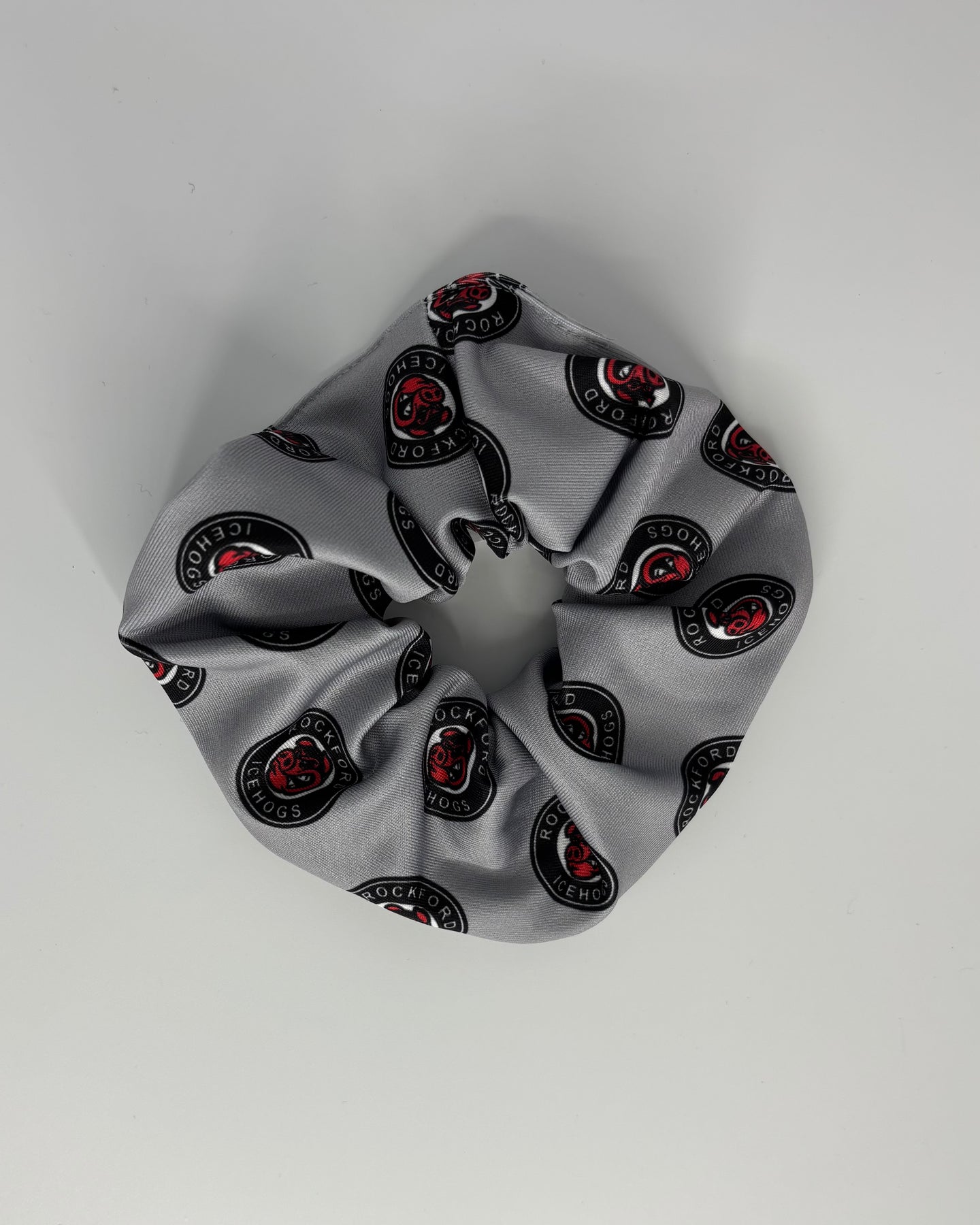 This Rockford IceHogs Spirit Scrunchie features an elastic grey scrunchie with an all over medallion logo print.