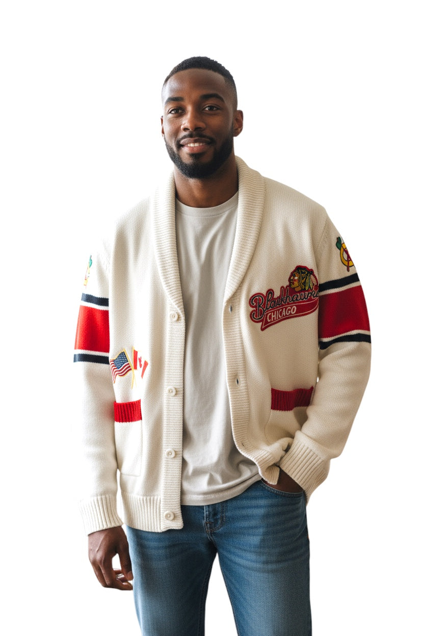 Wild Collective Chicago Blackhawks Heritage Cardigan Sweater